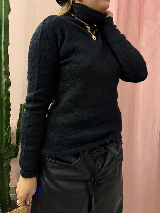 Maglia nera a collo alto in lana