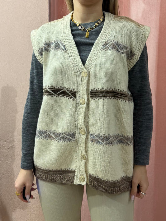 Gilet smanicato in maglia di lana panna