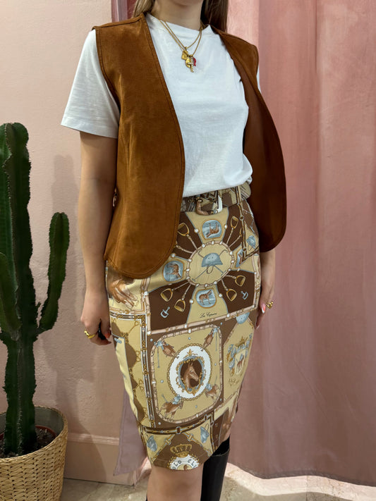 Gonna vintage midi con fantasia disegnata