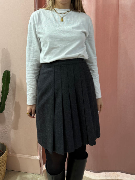 Gonna grigia con pieghe in lana