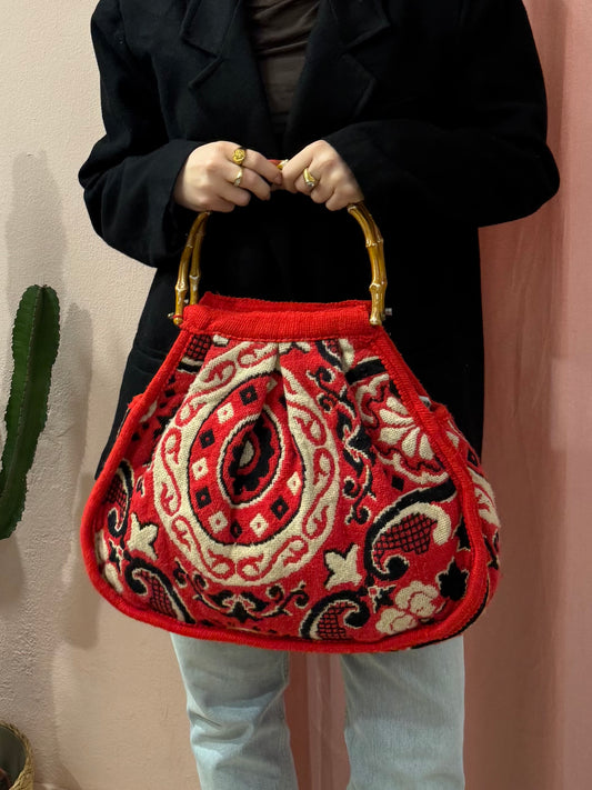 Borsa in lana con manico bamboo