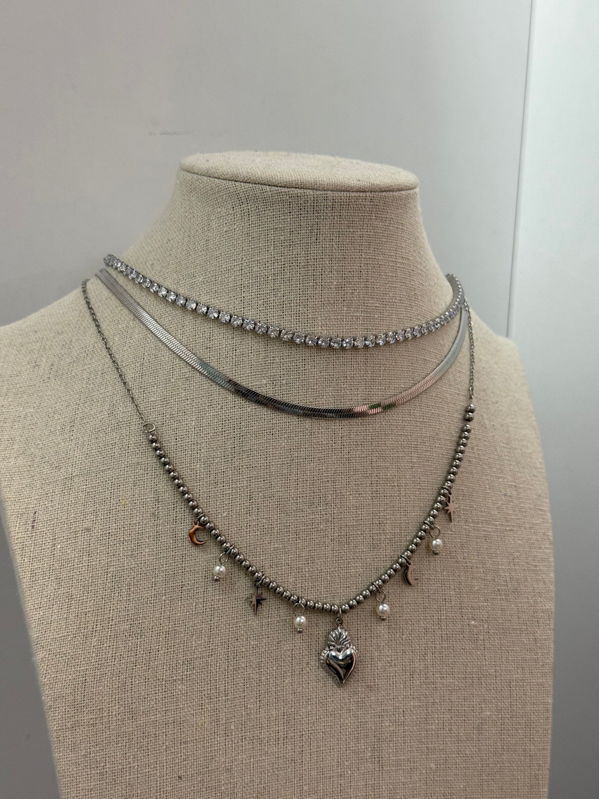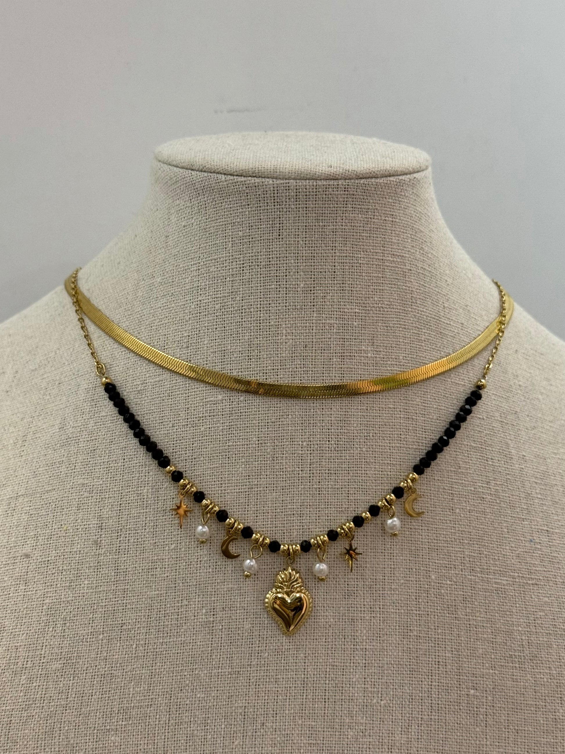 Collana ciondoli Cuore Sacro gold/ black e silver