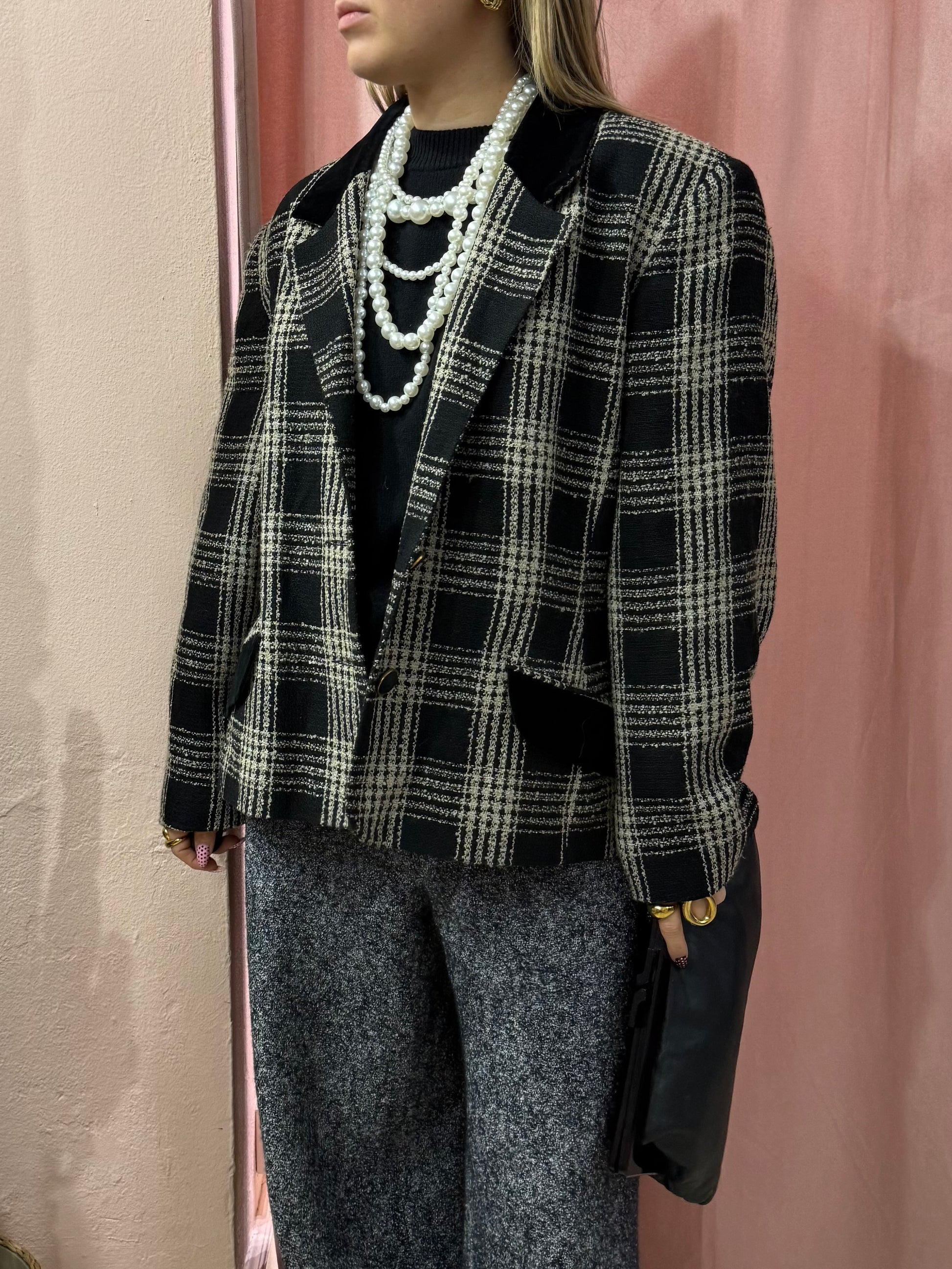 Blazer vintage monopetto con dettaglio collo bottoni e taschino rivestite, veste tg M/L