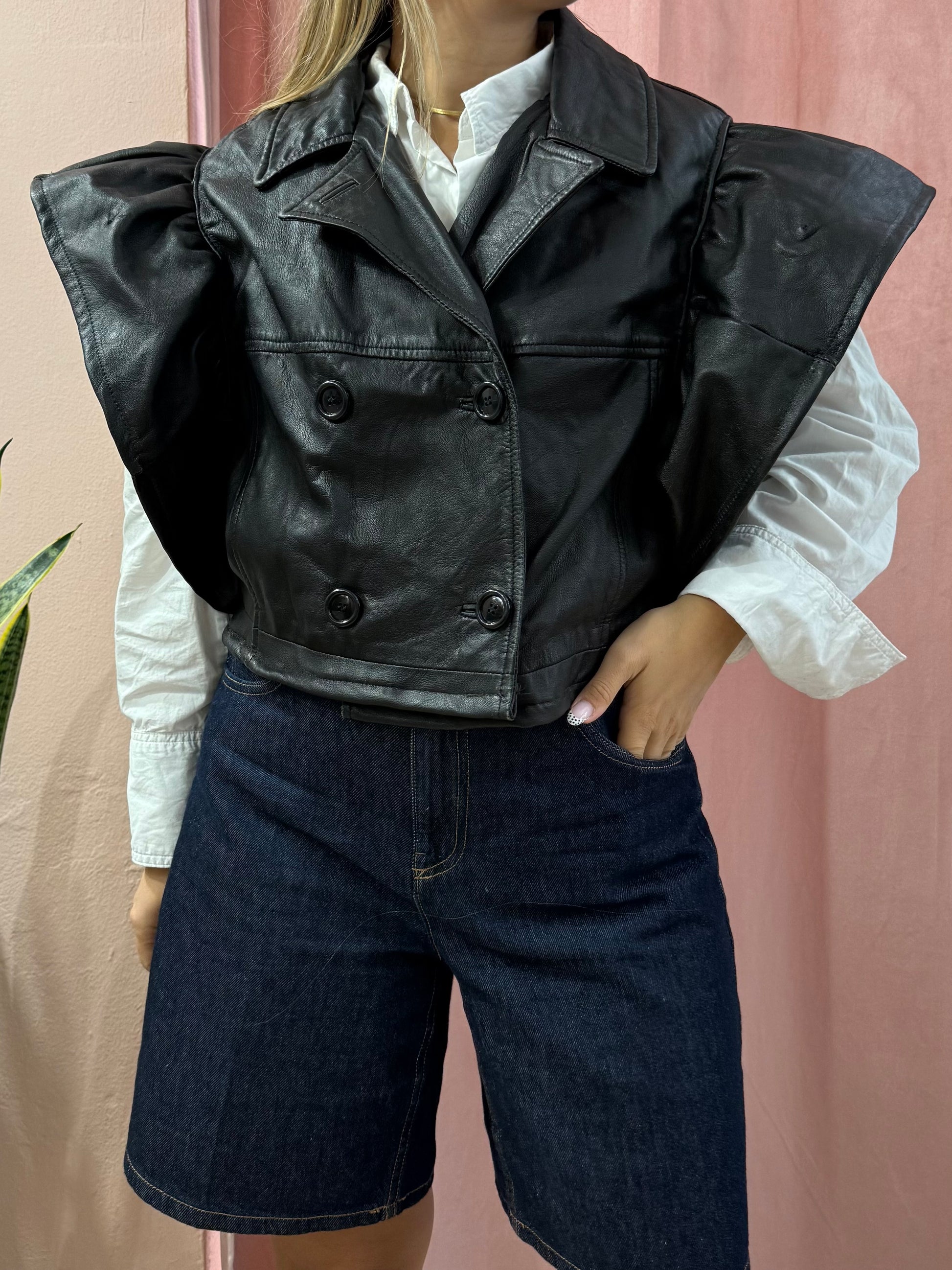 Gilet in vera pelle con voulant