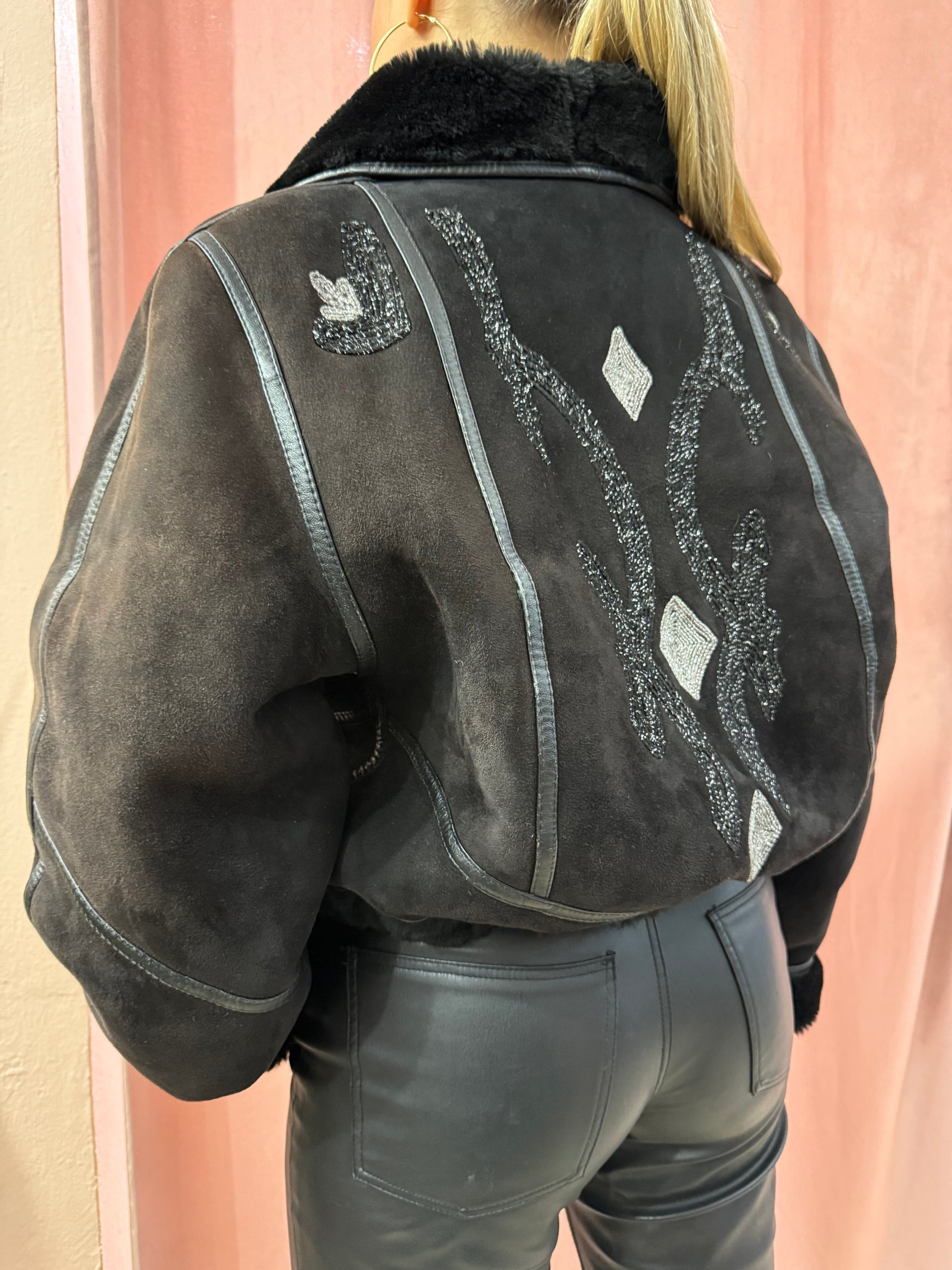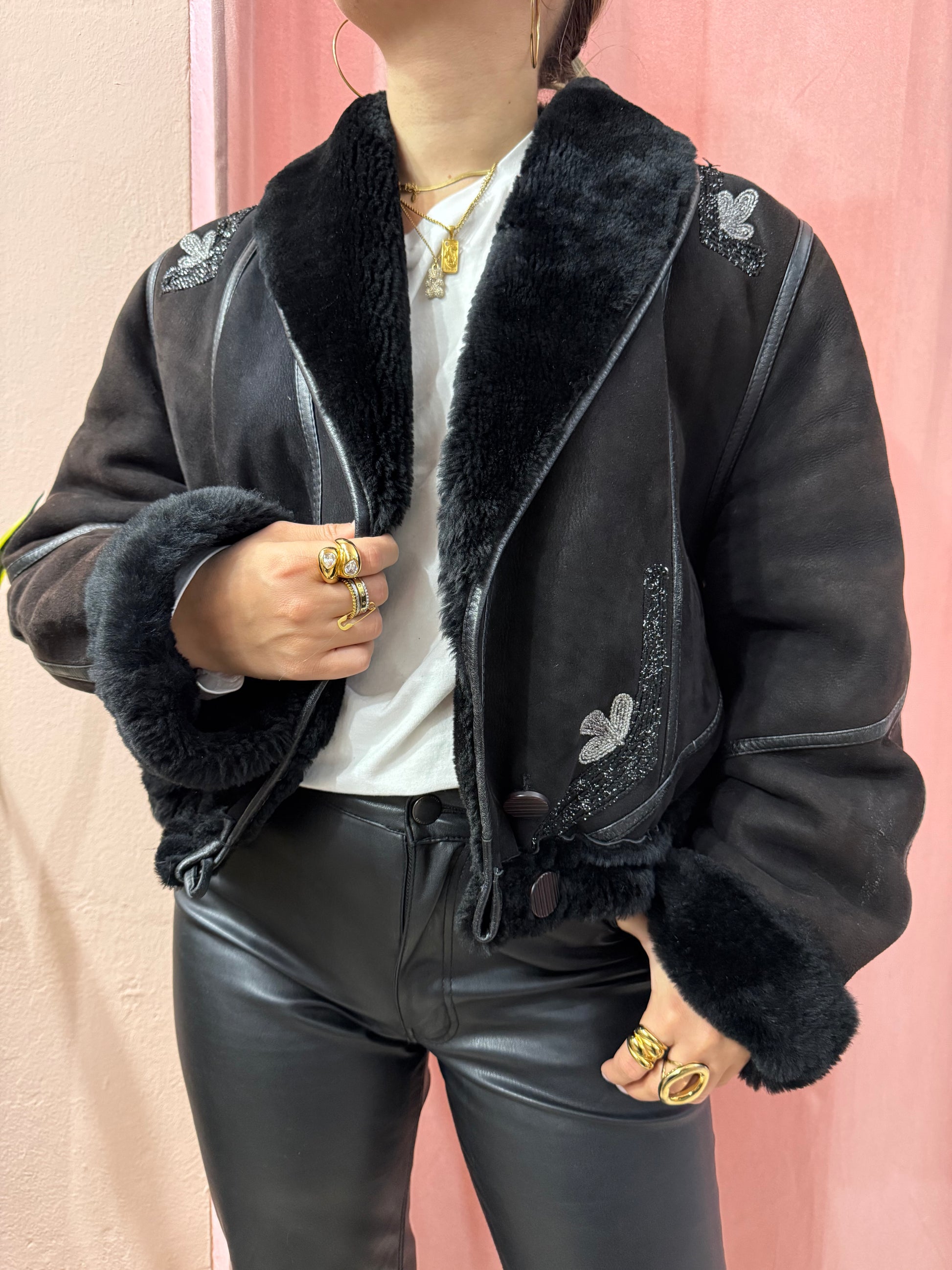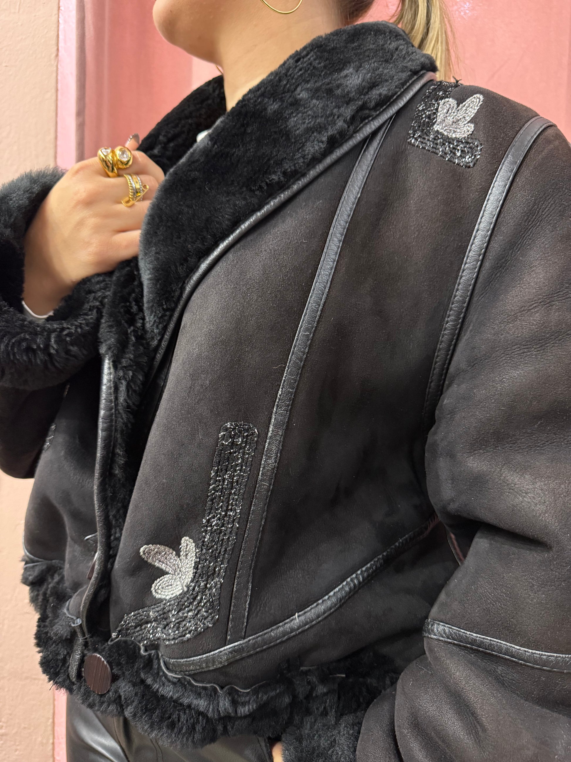 Montone vintage nero con ricami