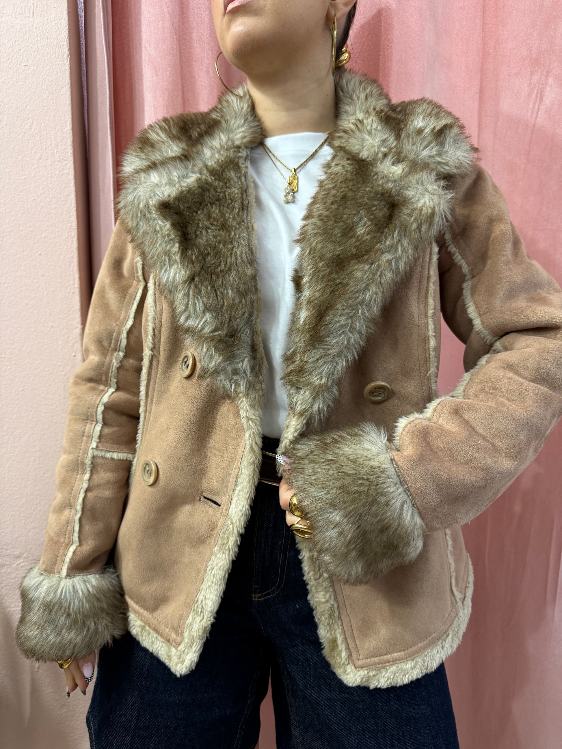 Modello anni 2000 doppiopetto con pelo sintetico. Indica tg S e veste la sua taglia